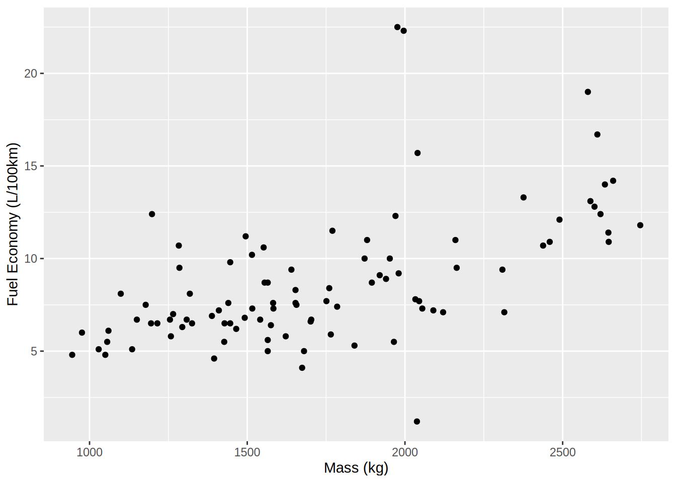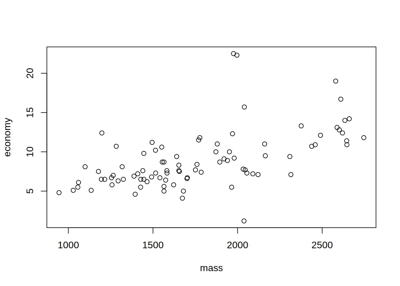 ggplot(qatarcars, aes(x = mass, y = economy)) +